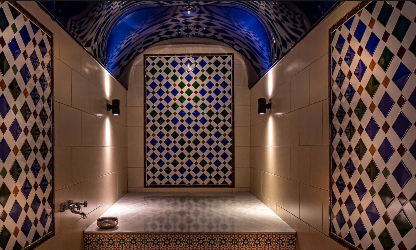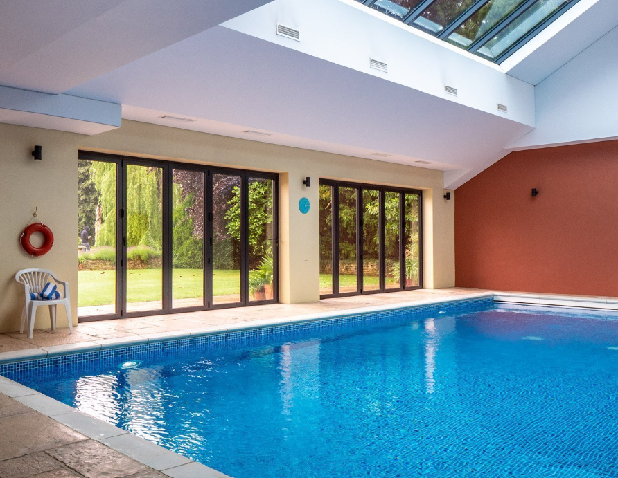 The private south-facing garden and terrace are furnished for outdoor dining and relaxation. Guests also have access to the shared facilities of Kingham Cottages — a heated indoor swimming pool, tennis court, and the Moorish Pavilion with its traditional hammam-style Turkish bath. The estate’s landscaped gardens, filled with sculptures and quiet corners, invite peaceful walks year-round.